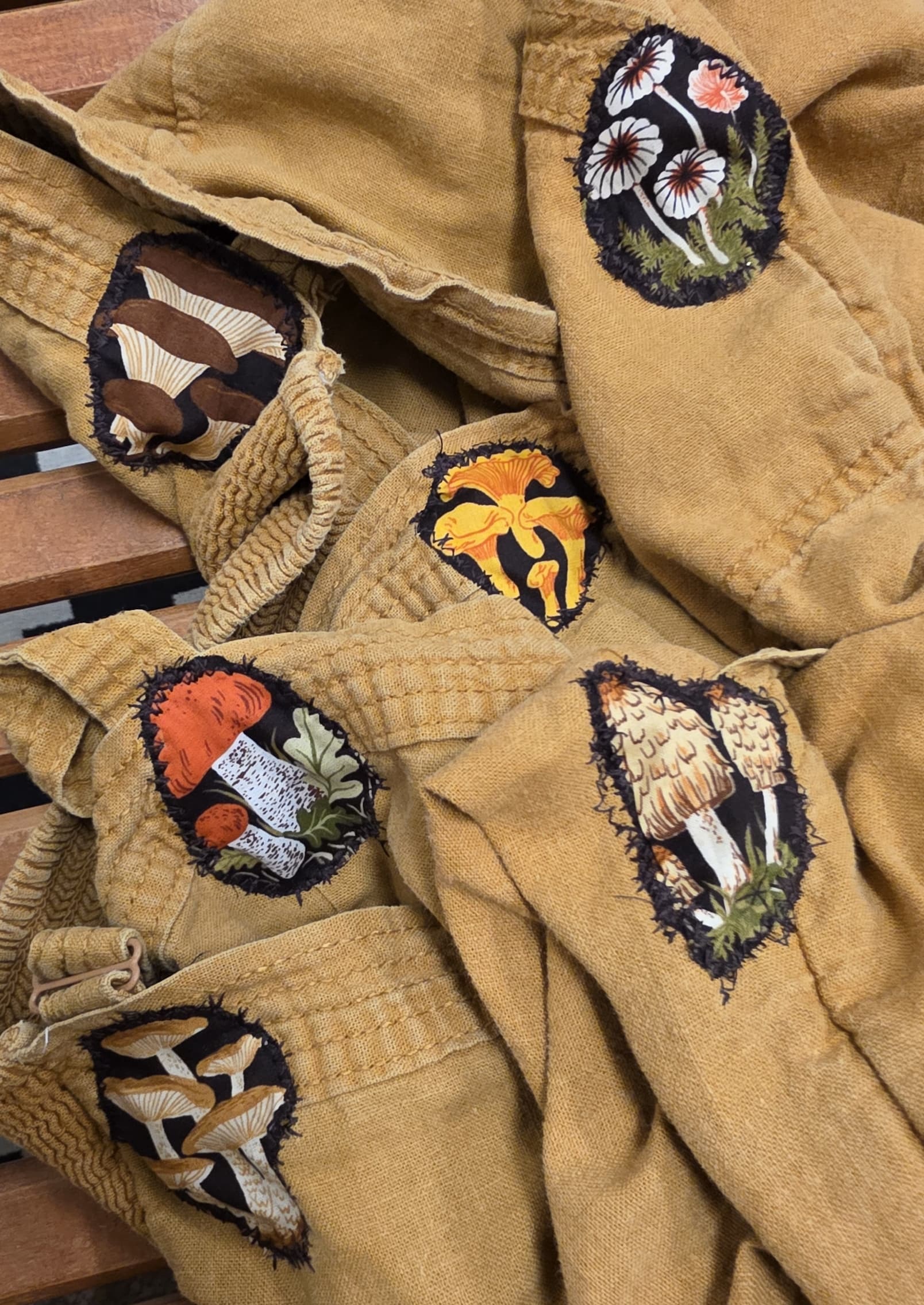 Today I patched up some holes on my jumpsuit, using fussy cut Flourish Lawn, which is coming this winter and can be found here. My sewing style is perfectly imperfect which is part of why I chose to patch them with the stitch I did. Personal touches to mend one of my favorite garments!